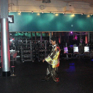Anyway, drinks in hand, we walked around the gym, which looked like a club with gym sets with all the mood lighting. It is a very large gym (three floors, although we only stayed on the first) and there was a lot of people