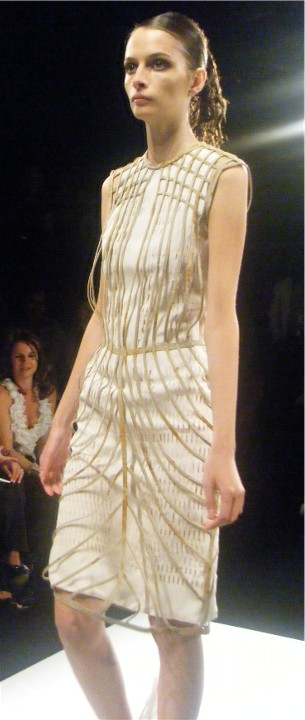 Maria Korovilas featured a beautiful embellished collection, her incorporated metal encrusted pieces and hand beading which took her over 600 hours to complete. Her collection actually reminded me of movies which featured the Gods. I could see Goddess Hera or Aphrodite wearing these pieces.
