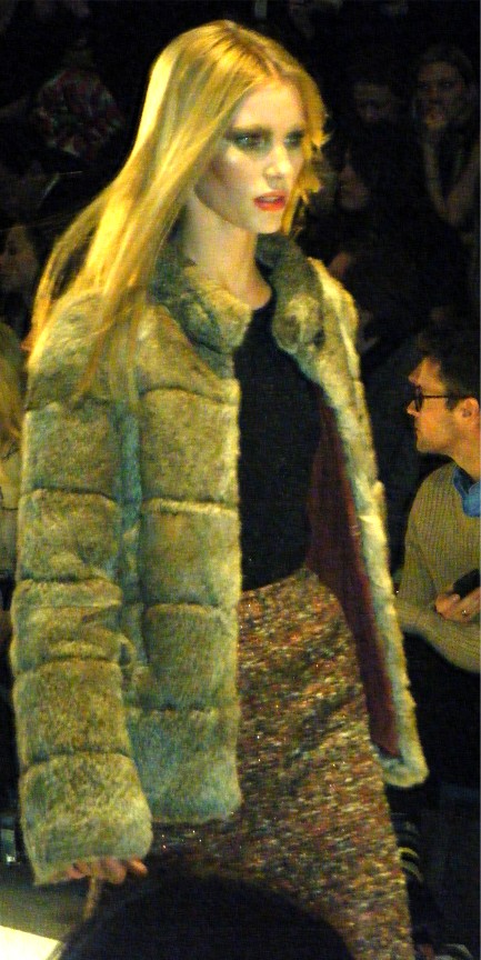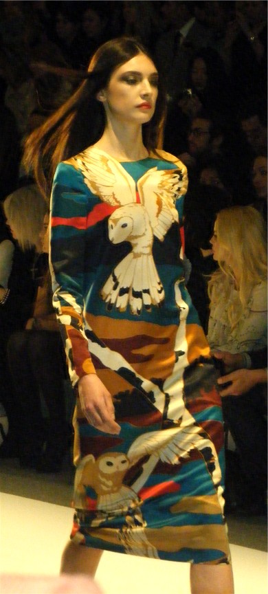 Jill Stuart opened her Fall 2011 show collection with looks screen printed with woodland creatures – owls, foxes, etc. No surprise since she was inspired by Heidi Specker’s photos of the Enchanted Forest (aka Black Forest) in Germany.