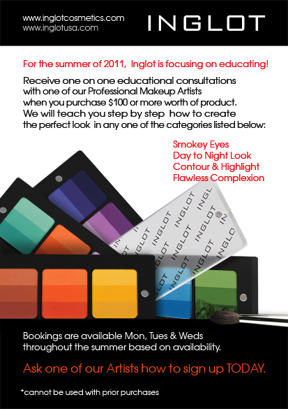 As the above flyer states, bookings are available Monday, Tuesday and Wednesday, so contact Inglot today.