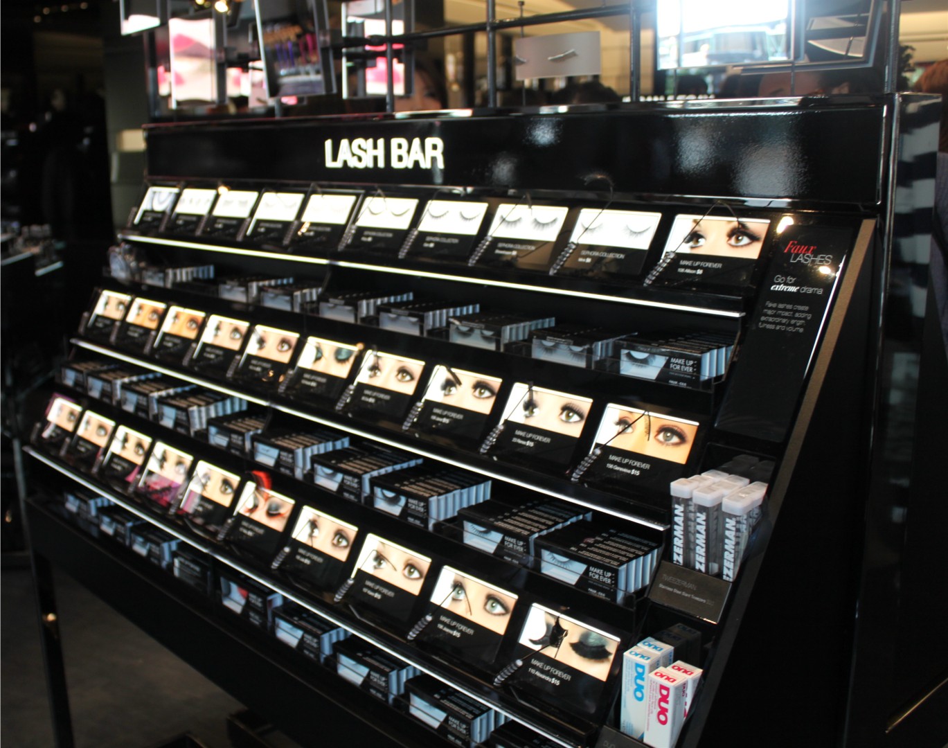 You can expect a free flowing design layout with areas dedicated to skincare, nail products, fragrance, color, brushes and my favorite – the Lash Bar, which allows you to try lashes in various colors and lengths.