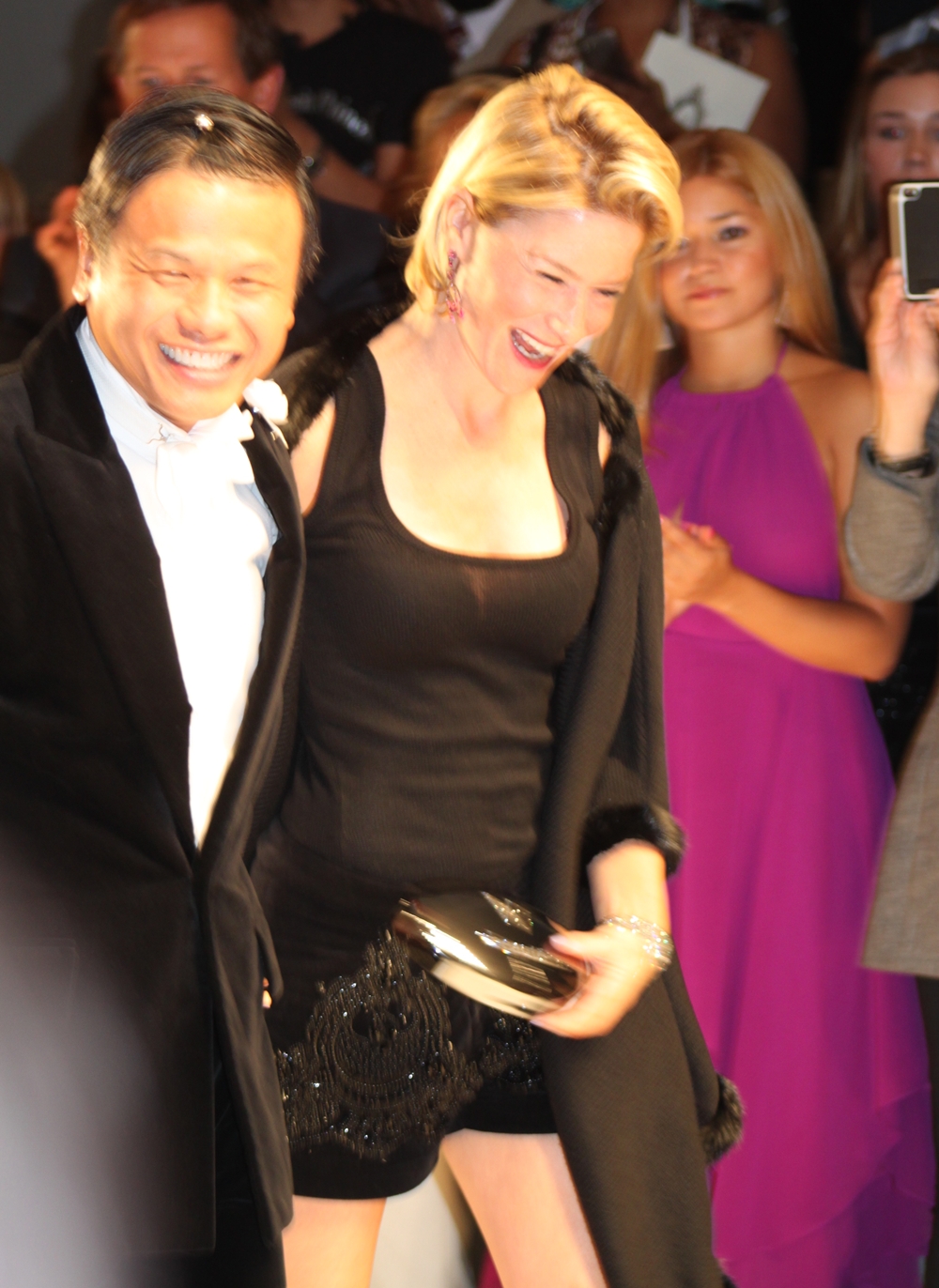 When I think of Zang Toi and showcasing his collection at Mercedes-Benz Fashion Week, I actually think of an opera, which makes Lincoln Center the perfect location to present his fashions. This season was no different; the maestro, Zang Toi took us on a journey filled with crescendos, Grandioso and a medley of harmonious looks in soft, melodious colors (especially surprising were the pastels, which we haven’t seen from Zang). Inspired by his first-ever muse, Julie Macklowe, Zang Toi featured looks that highlighted the different personalities that every woman possesses in her arsenal – sensual bedroom bunny, office vamp, powerful career woman, quintessential lady and the pretty princess