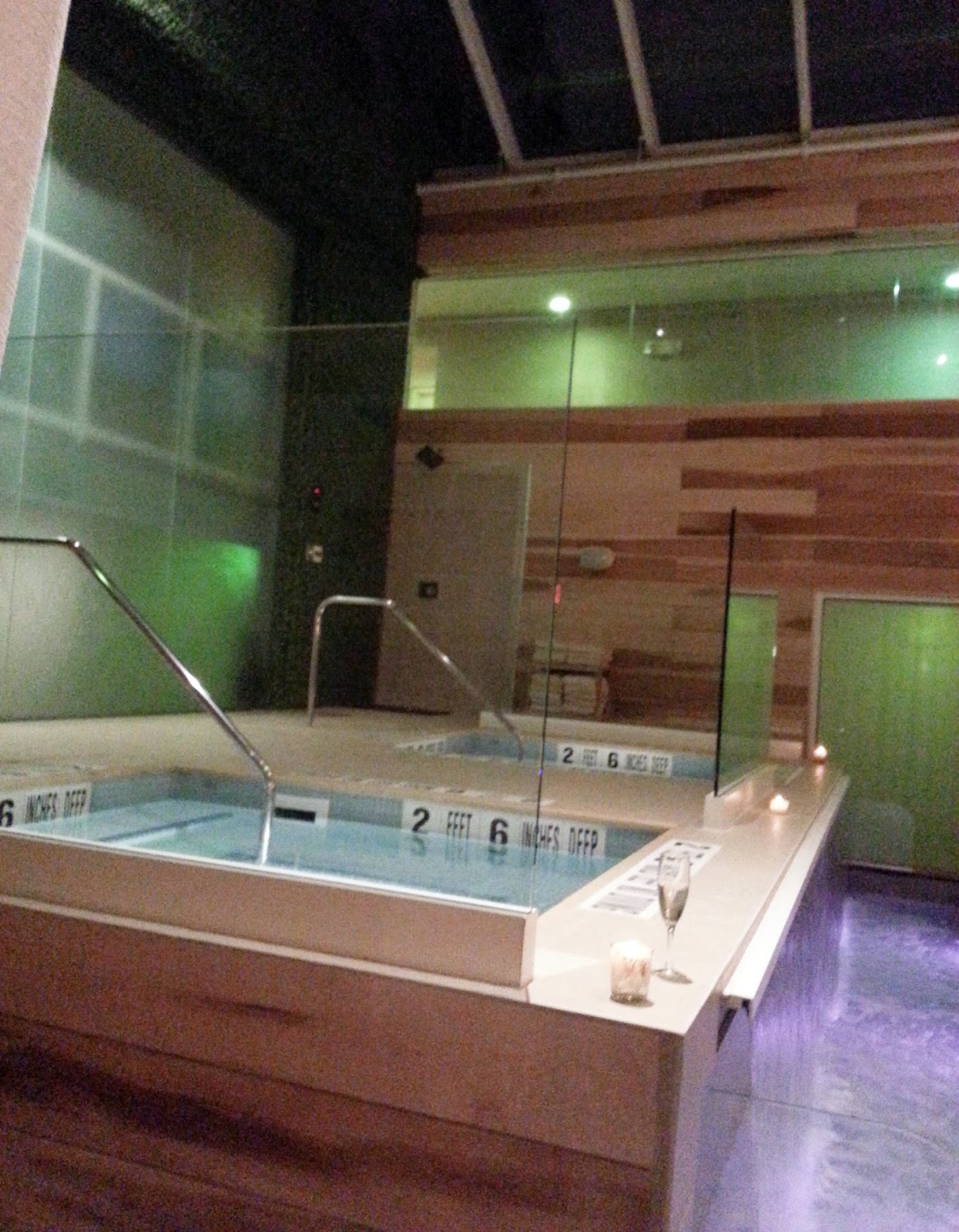 The 5,000 square foot Spa at the Out NYC Hotel (pictured directly below), who offers a full menu of spa treatments for men and women, includes an expansive glass-covered atrium and a 15-foot waterfall that sets the stage for relaxation. Your spa experience starts with our custom changing room with steam and sauna, and leads you to our spa facilities including full-service spa, Deck and Gym.